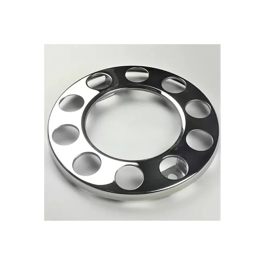 Capac roata camion inox cu 10 gauri si 2 gauri de prindere.