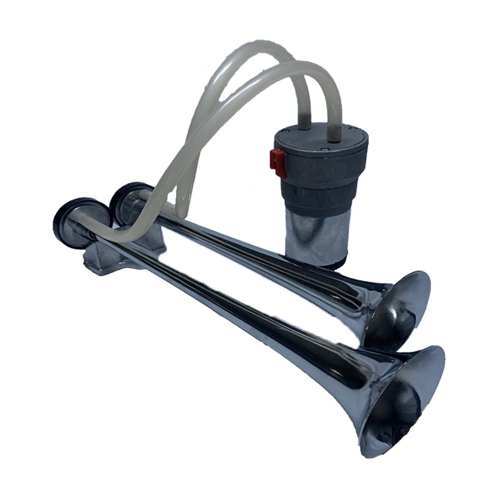 Claxon 3 goarne cu compresor, crom, 12V, 21.5cm