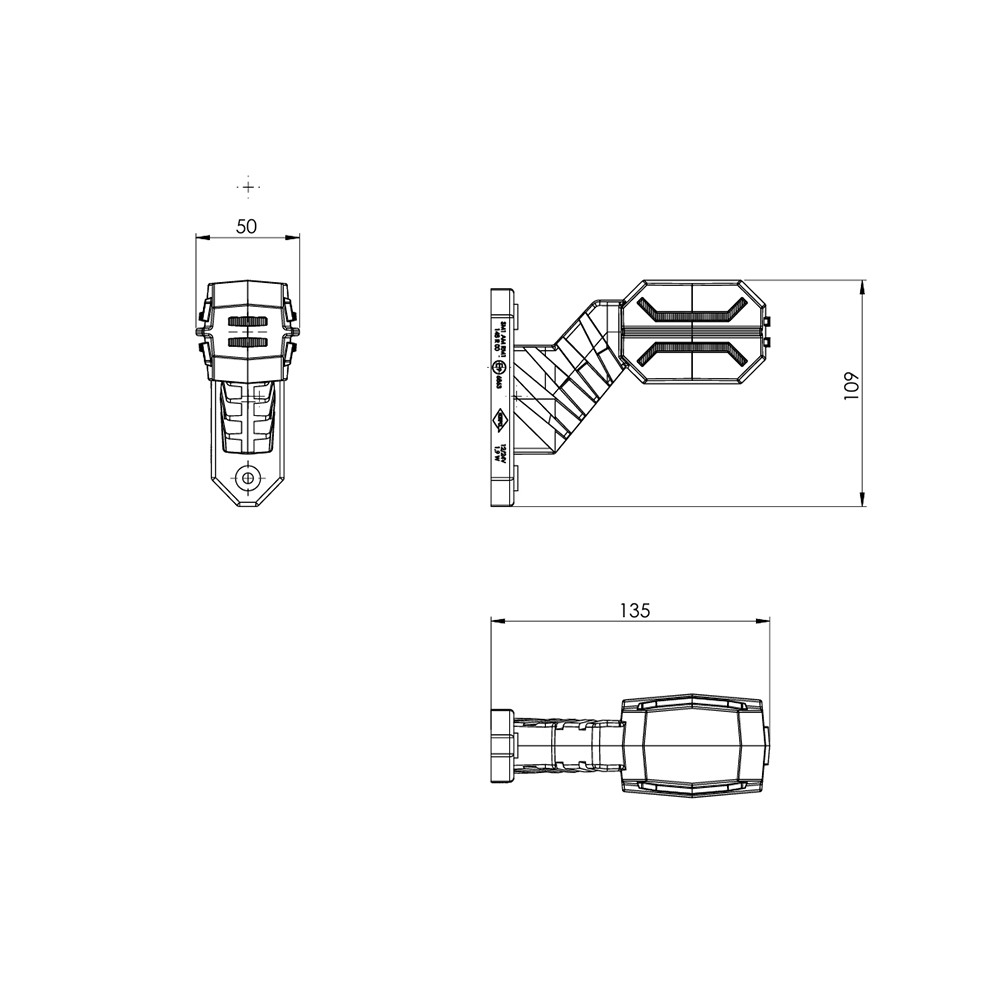 Lampa de gabarit este o lampa cu trei functii pe un brat oblig mediu, proiectata sa fie montata pe partea dreapta sau pe partea stanga a vehiculului. Lampa este destinată utilizării în camioane și mașini agricole, remorci și semiremorci.